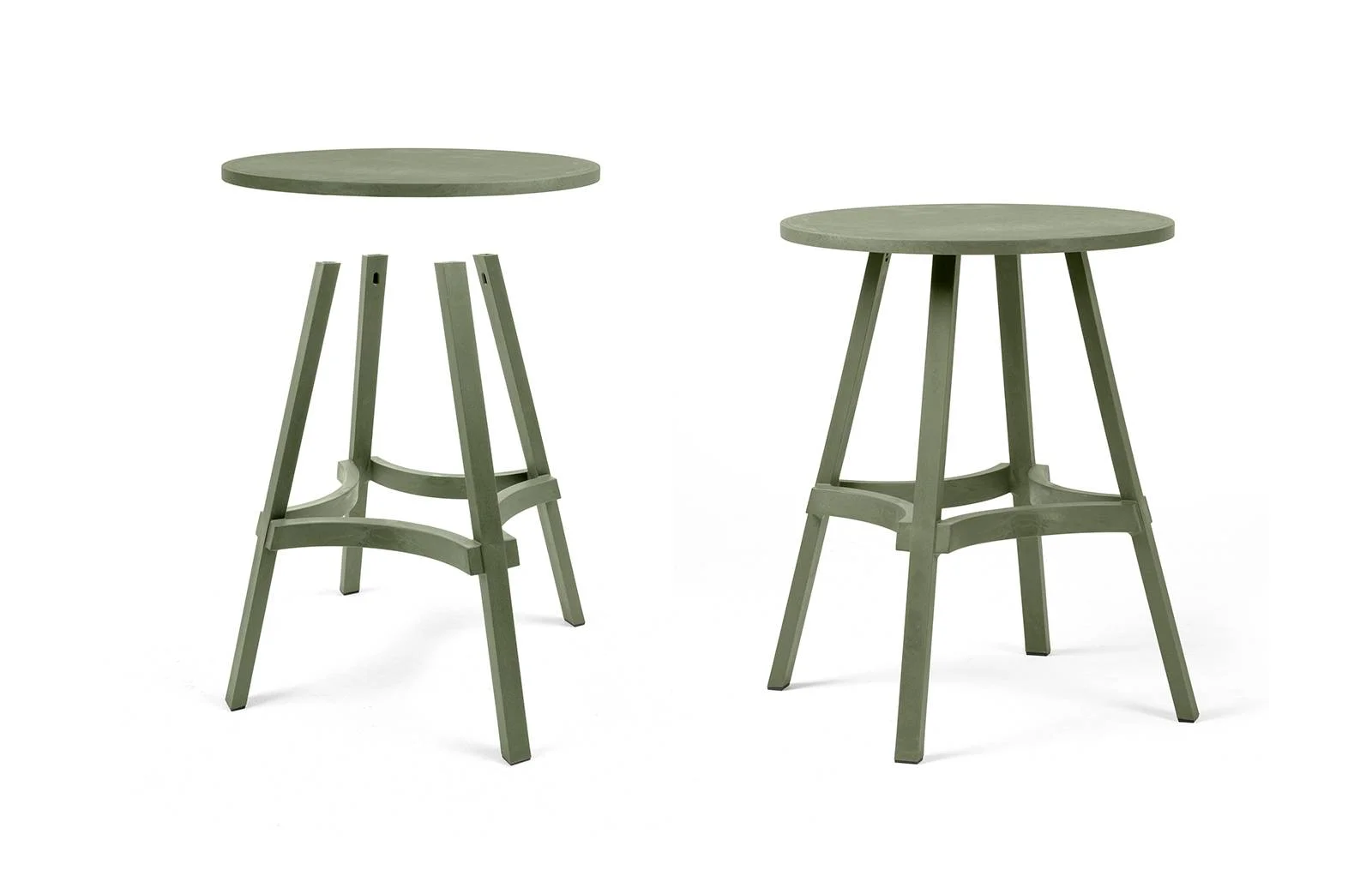 là một chiếc bàn có những đường thẳng và mặt trên tròn. Nó có thể được chuyển đổi thành một bàn bar cao (Combo High) bằng cách thêm phần mở rộng. Sự pha trộn đặc biệt có một số đường nét được hài hòa bởi các màu Terra, Gesso, Basalto, Cactus và kết cấu mờ thô với hiệu ứng cổ điển.Bàn có cột giữa và 4 nan. Chất liệu: nhựa polypropylen sợi thủy tinh có màu đồng nhất tái sinh* với chất phụ gia UV. Kết thúc mờ. Chân có thể điều chỉnh độ cao. Nhựa có thể tái chế.