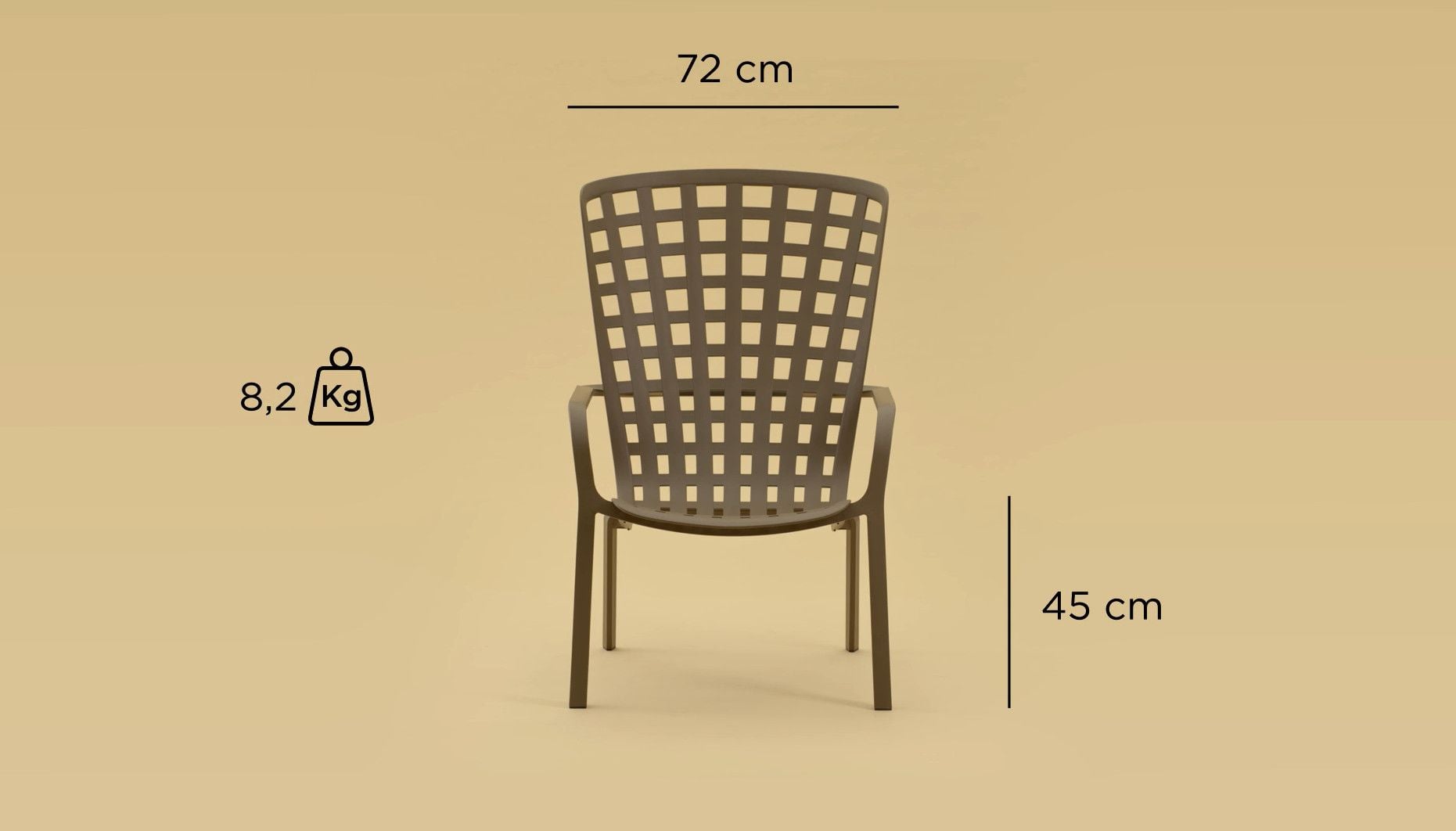 Chất liệu: nhựa polypropylene sợi thủy tinh có màu đồng nhất với các chất phụ gia UV. Kết thúc mờ. Với chân chống trượt. Đệm có sẵn để đặt hàng. Nhựa có thể tái chế.