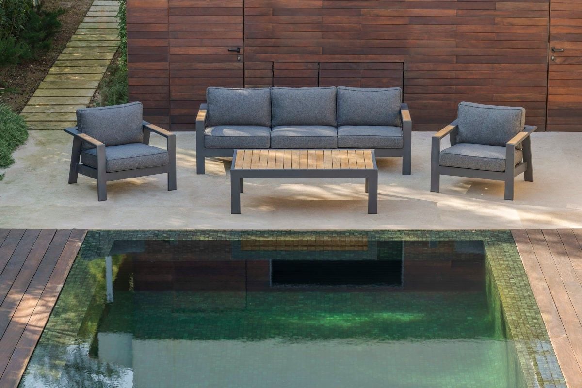 Các miếng gỗ tếch được chứng nhận FSC mang lại cảm giác ấm áp trong khi đệm Olefin cao cấp mang lại khả năng hỗ trợ và ngồi cực kỳ thoải mái.